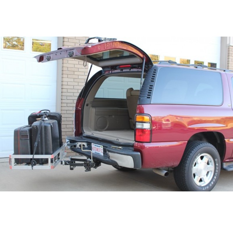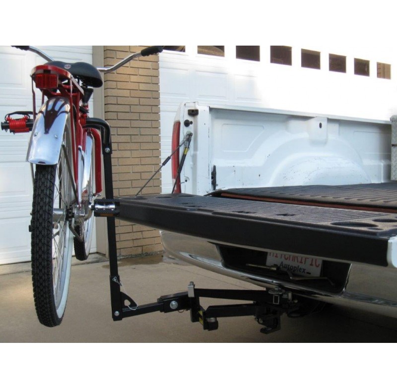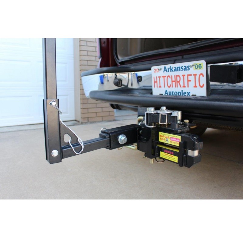 Quik-Coupler allows attachment of a bike rack, cargo carrier, tailgate step or any other receiver mounted accessory onto the extendable arm of the Reel-Quik Hitch. The extension of the coupler mounted accessory may then gain clearance from vehicle rear hatches and pick-up truck tailgates.
